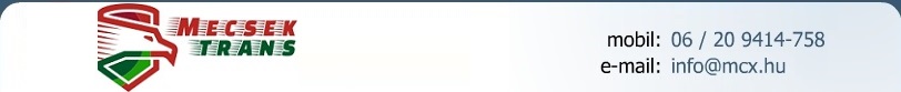 - Túlméret-pótdíj: 2 m hossz felett +3.000,- Ft + ÁFA.